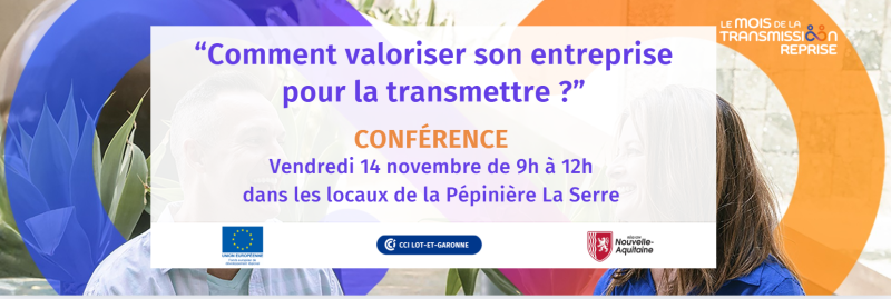 Conférence Vendredi 14 novembre dans les locaux de la Pépinière La Serre (Technopole Agen Garonne, 257 All. de Métalé, 47310 Sainte-Colombe-en-Bruilhois)